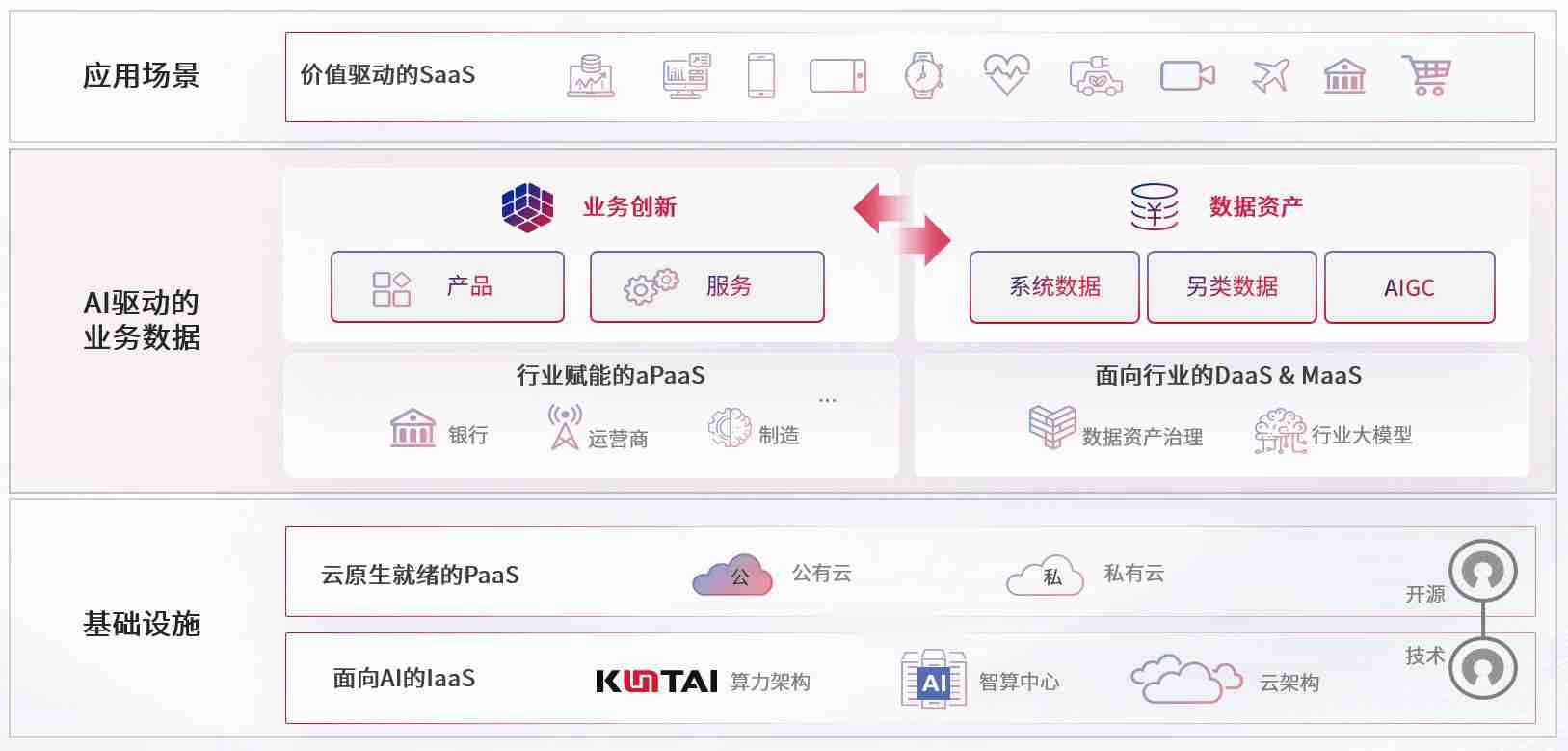数字时代,,,,围绕企业数字化转型的关键要素,,,Z6尊龙时凯数码开创性的提出数云融合战略和技术体系框架,,,,着力在云原生、、、、数字原生、、、AI原生和信创产业上架构产品和服务能力,,,,为处在不同数字化转型阶段的快消零售、、、汽车、、、金融、、、医疗、、、政企、、教育、、、、运营商等行业客户提供泛在的敏捷IT能力和融合的数据驱动能力,,,构建跨界融合创新的数字业务场景和新业务模式,,,,助力企业级客户建立面向未来的核心能力和竞争优势,,,全面推动社会的数字化、、智能化转型升级。。。